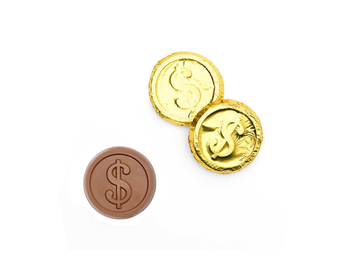 Cash in on chocolate! This golden, dollar-embossed coin offers a rich, satisfying taste that's perfect for incentives, promotions, or themed celebrations.